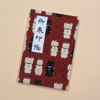 御朱印帳「招き猫 桑染色」、蛇腹は和紙/表紙に布地使用